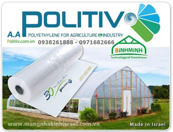 Sản phẩm được sản xuất bởi Politiv – thương hiệu hàng đầu Israel trong lĩnh vực màng nhà kính, hiện đang được ứng dụng rộng rãi tại hơn 50 quốc gia trên toàn thế giới, bao gồm cả Việt Nam.
